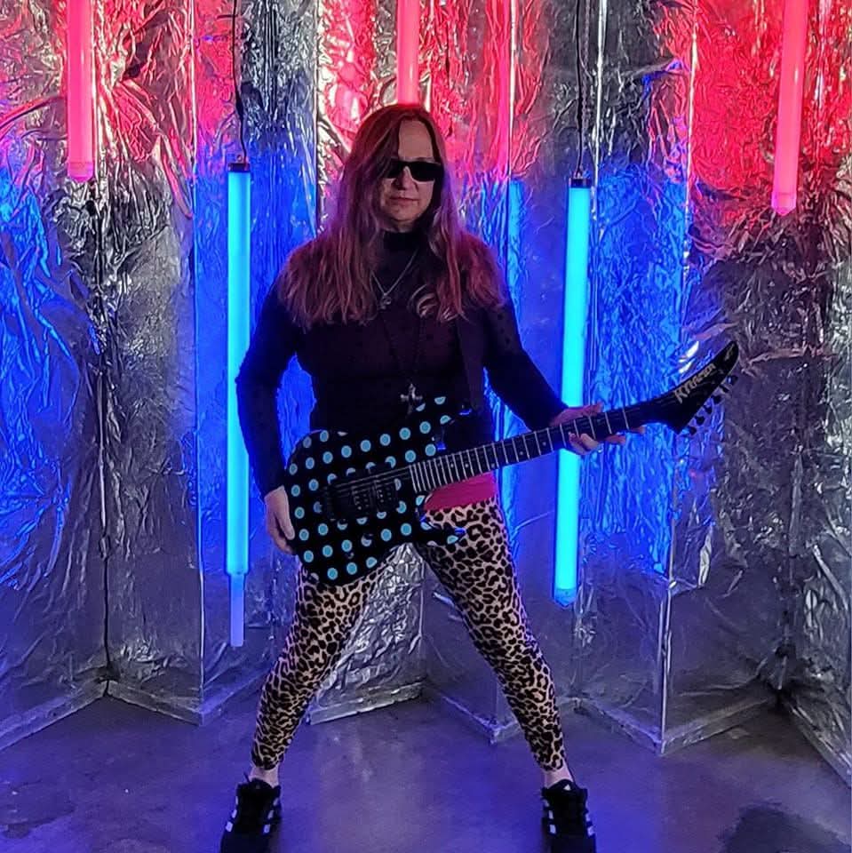 Sara Marsh is a guitarist with decades of experience playing live and in the studio. She is adept at most styles, having played country, blues, pop, and metal in bands based in her hometown of Los Angeles and while attending college in Kansas City. Sara toured the world for 10 years with The Iron Maidens and appears on all their studio and live releases. She also composes original music in her home studio and releases it under her nickname Sarabaracuda. Her live show is unabashedly in your face, sometimes literally. Feel free to ask her questions during the set as she can play and talk simultaneously, but be ready to take a pick and give the whammy bar a pull as a polite thank you. Offstage, Sara teaches special education and loves to bake. Her stage equipment is a Fractal Audio FM9 guitar processor, an EVH tribute guitar, and two custom super strats. Sara’s favorite song to play with We Are The 80’s is “Separate Ways” by Journey.